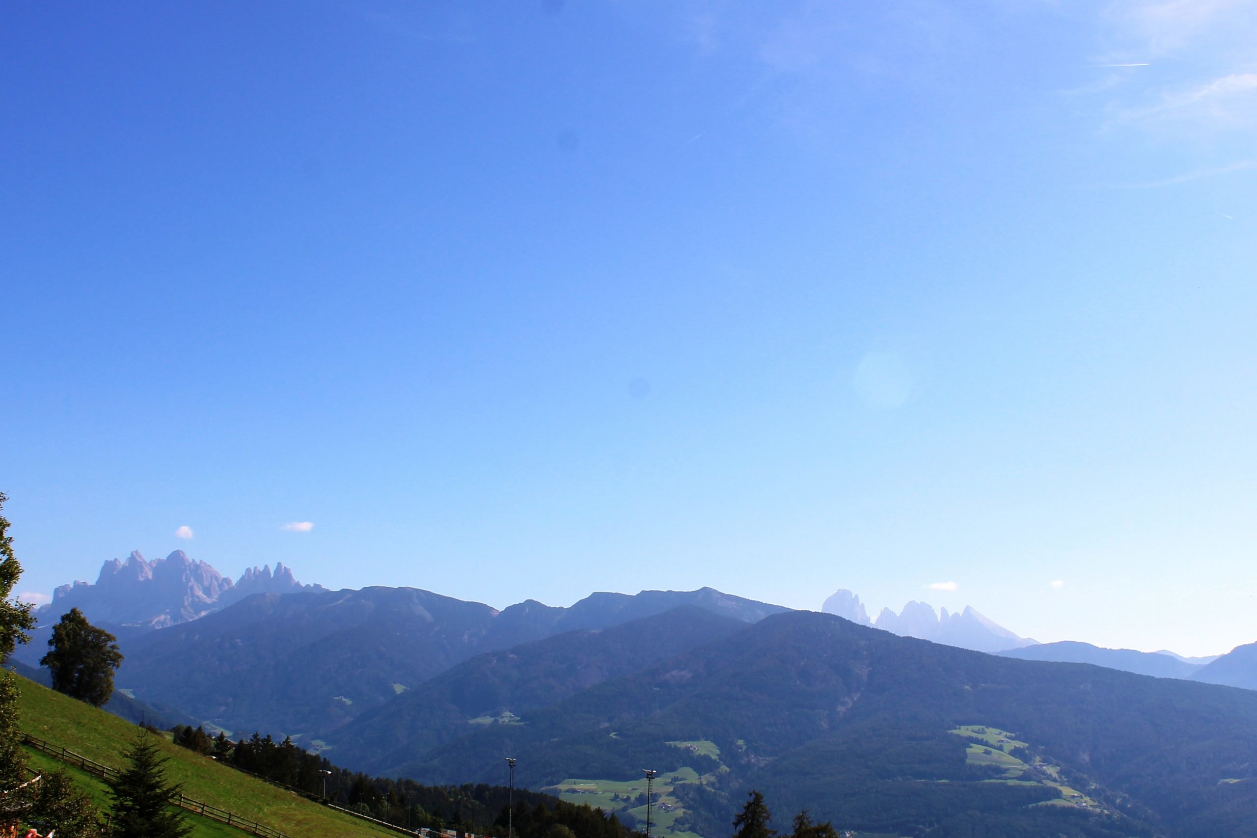 - Balkon mit kleiner Sitzecke und Blick auf das Dorf Latzfons und auf die Dolomiten